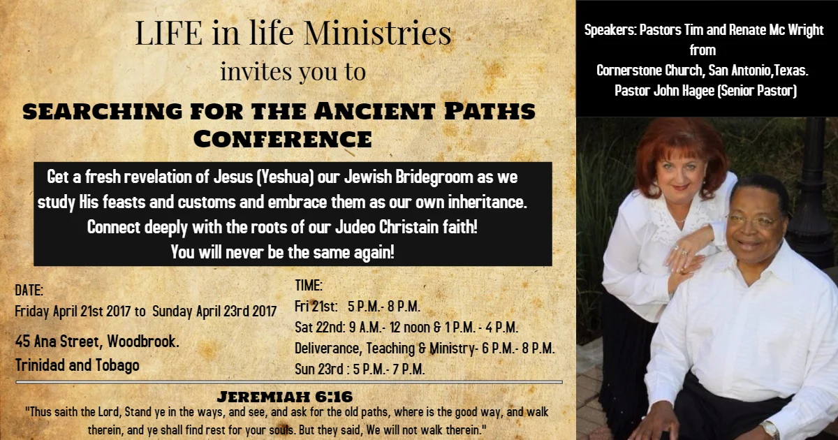 The conference will be held at LIFE in life Ministries at 45 Ana Street, Woodbrook, under the covering of Pastors Chris and Michelle Young. There is no fee for this conference, but an offering will be taken up for the facilitators.